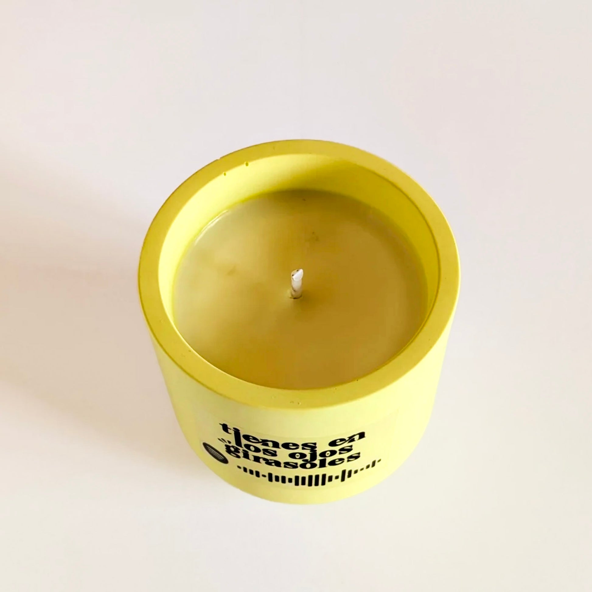 Forma parte de mi colección de velas musicales. En ella descubrirás un código de Spotify, que al escanearlo en la aplicación, te llevará a una playlist de 4,10h de duración.