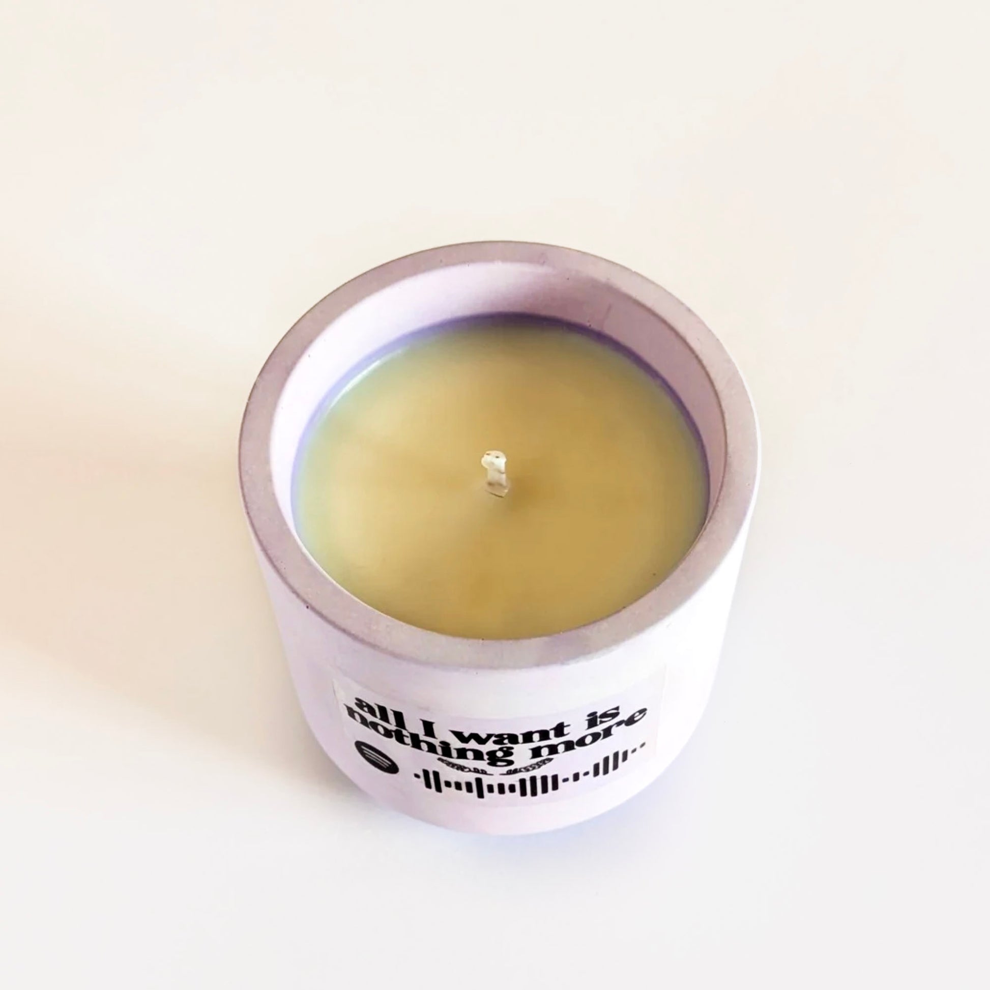 Forma parte de mi colección de velas musicales. En ella descubrirás un código de Spotify, que al escanearlo en la aplicación, te llevará a una playlist de 2,40h de duración.